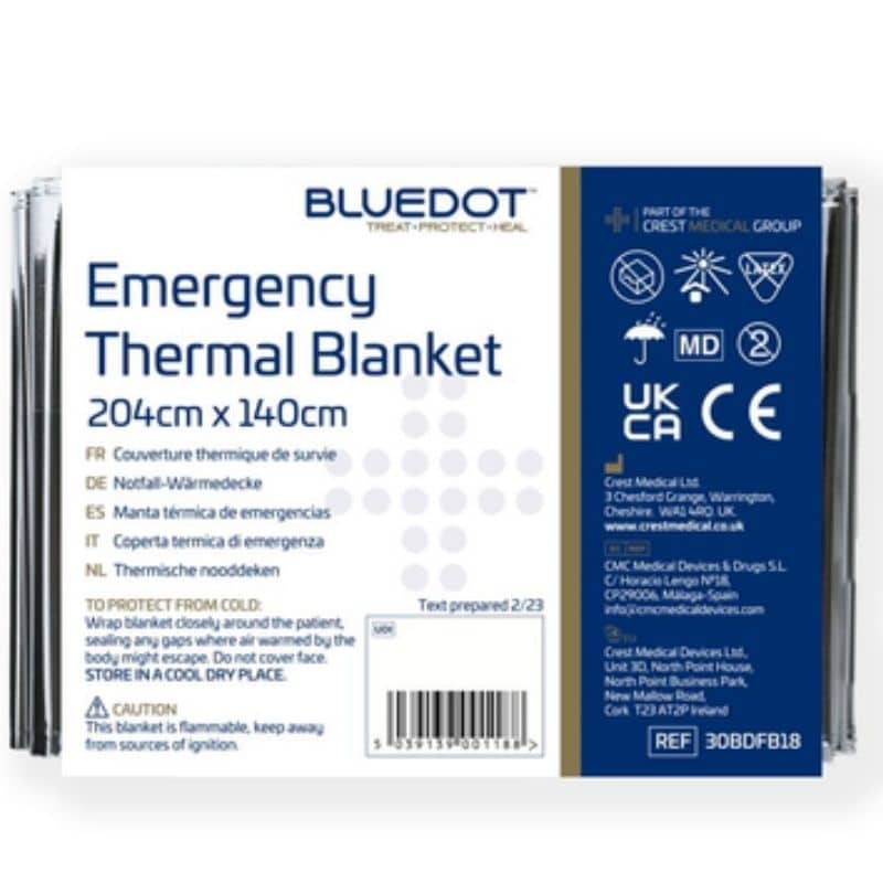 Whether you’re building an emergency kit, running an outdoor event, or equipping your workplace for Martyn’s Law compliance, the Blue Dot Adult Emergency Thermal Blanket is a vital addition. This compact, ultra-lightweight blanket offers immediate protection against the cold, while also helping to prevent shock in trauma situations. From hypothermia prevention to reflecting body heat in evacuations, this versatile survival tool is small in size, but big in life-saving potential.